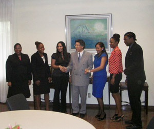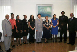 On Thursday 2 August 2012, His Excellency hosted a farewell reception at his residence for six participants of the JET Programme. The six participants for 2012 are as follows: from Trinidad and Tobago - Ms. Kavita Premchan, Mr. Runako Thornhill, Ms. Crystal Washington, Ms. Giselle Williams, Ms. Tsai Ann Quan Kep, and from Barbados- Ms. Alexis Kinch.